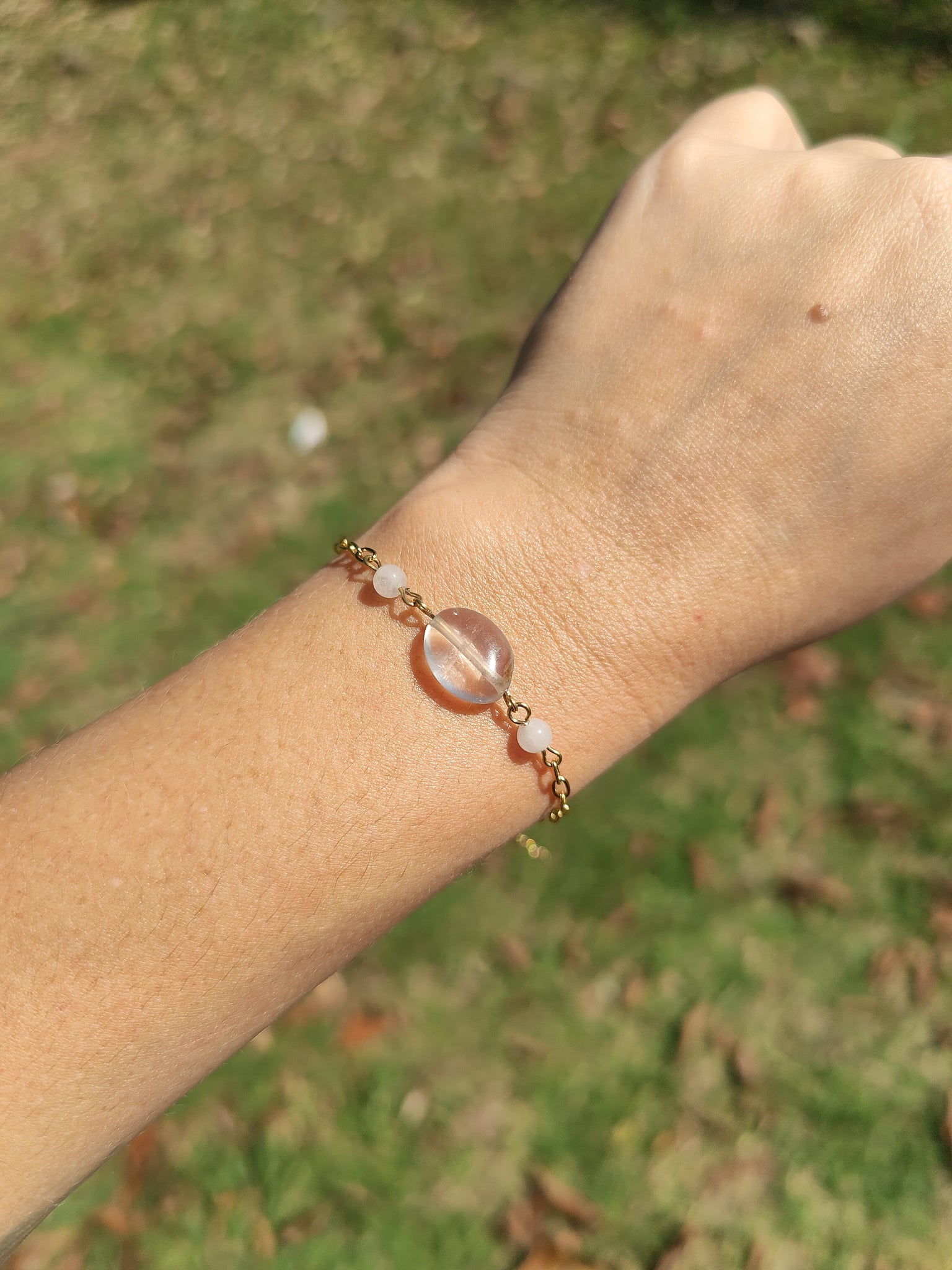 Le bracelet Daya, fait d'une perle de quartz rose en forme d'olive et entourée de perles de quartz rose, est un symbole à l'amour de soi. Portez ce bracelet pour vous entourer d'une énergie apaisante et aimante.