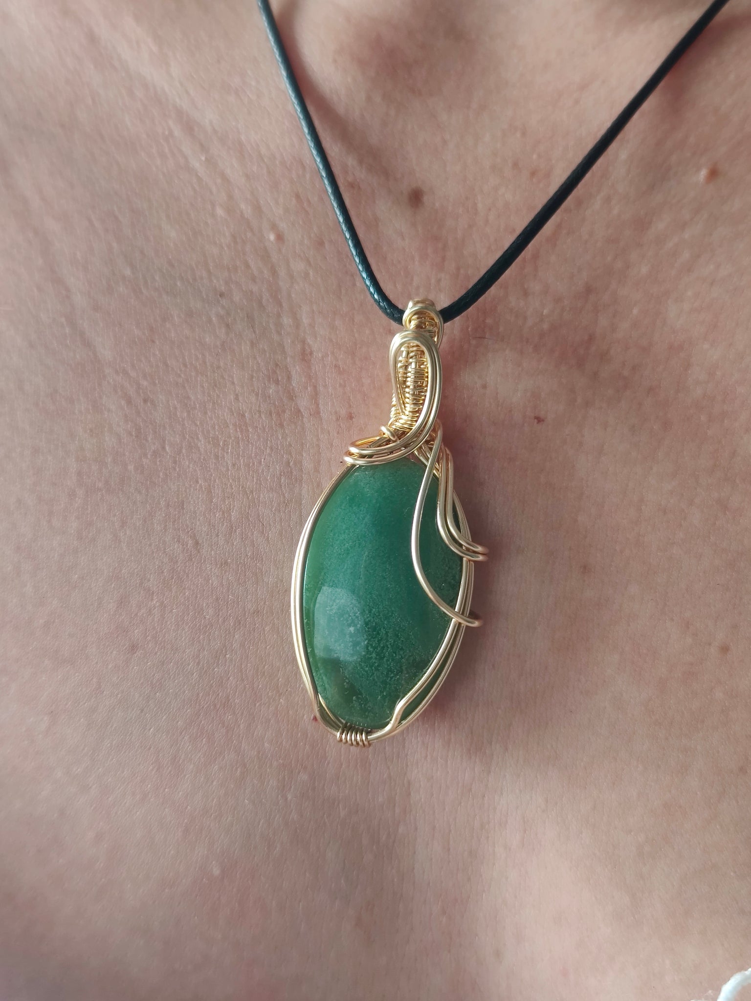 🌿Pendentif unique en serpentine fait main en utilisant la technique du wire wrapping