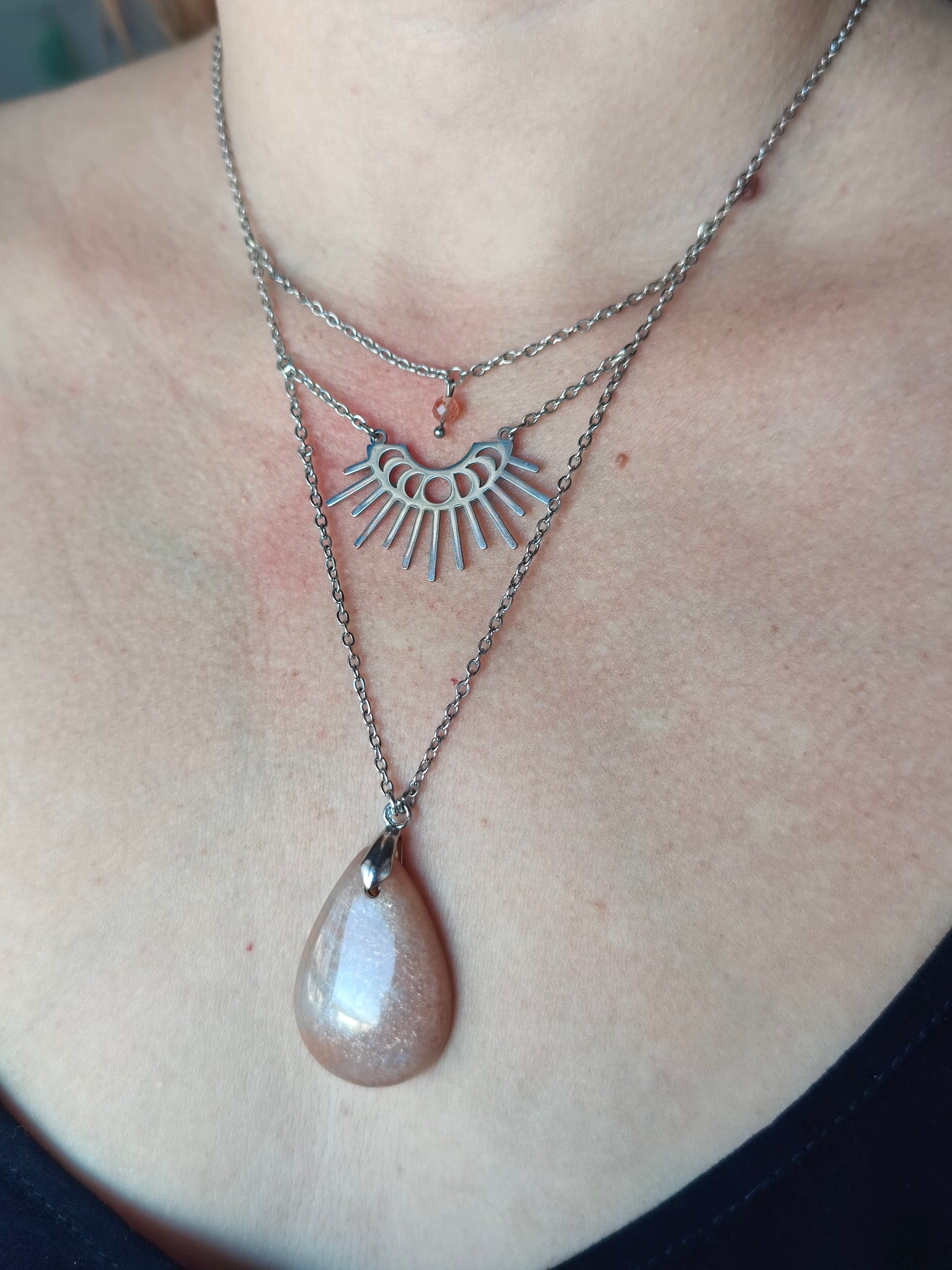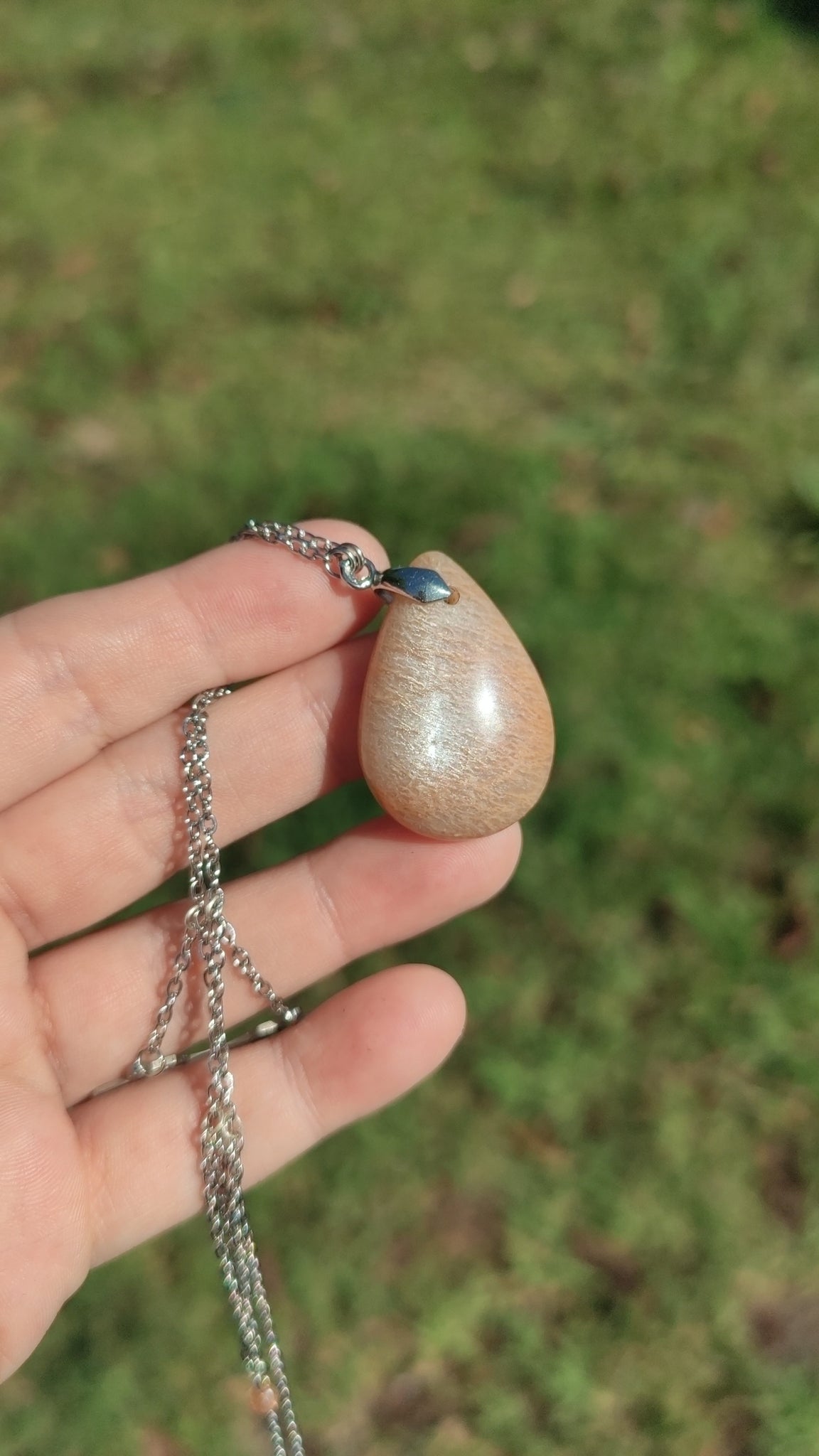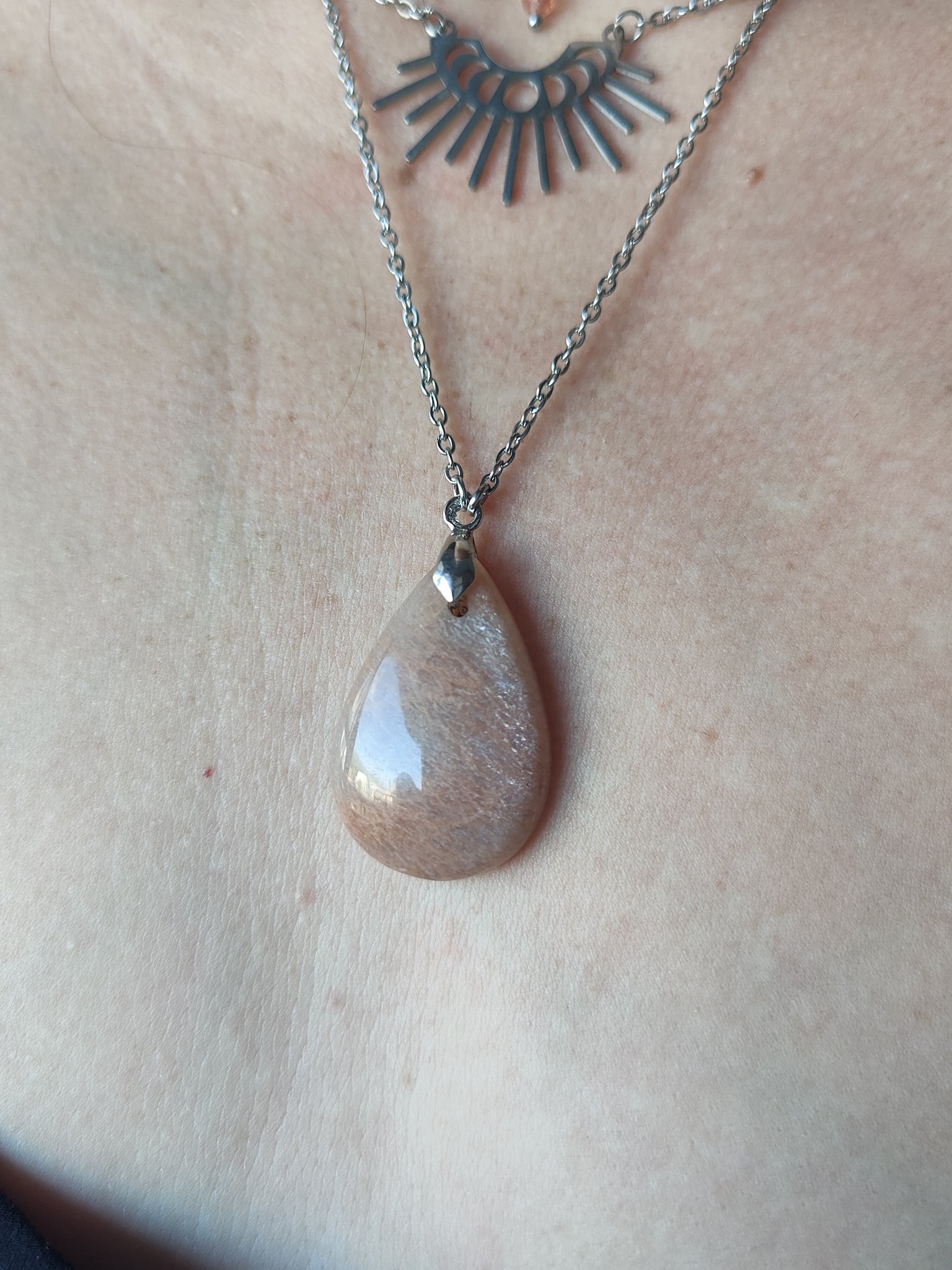 Pendentif en pierre de lune naturelle (couleur pêche aux reflets argentés intense)